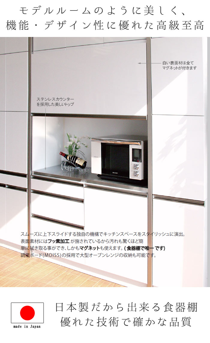105周年クーポン配布中 キッチン収納 ダイニング収納 キッチン用品 オープンボード キッチンボード 食器収納 家電収納 しょっきだな Qog 40k キッチン家具 日本製 上置き付き 収納家具 レンジ台 レンジボード 食器棚 幅107cm 奥行55cm 高さ235cm ダストボックス対応d